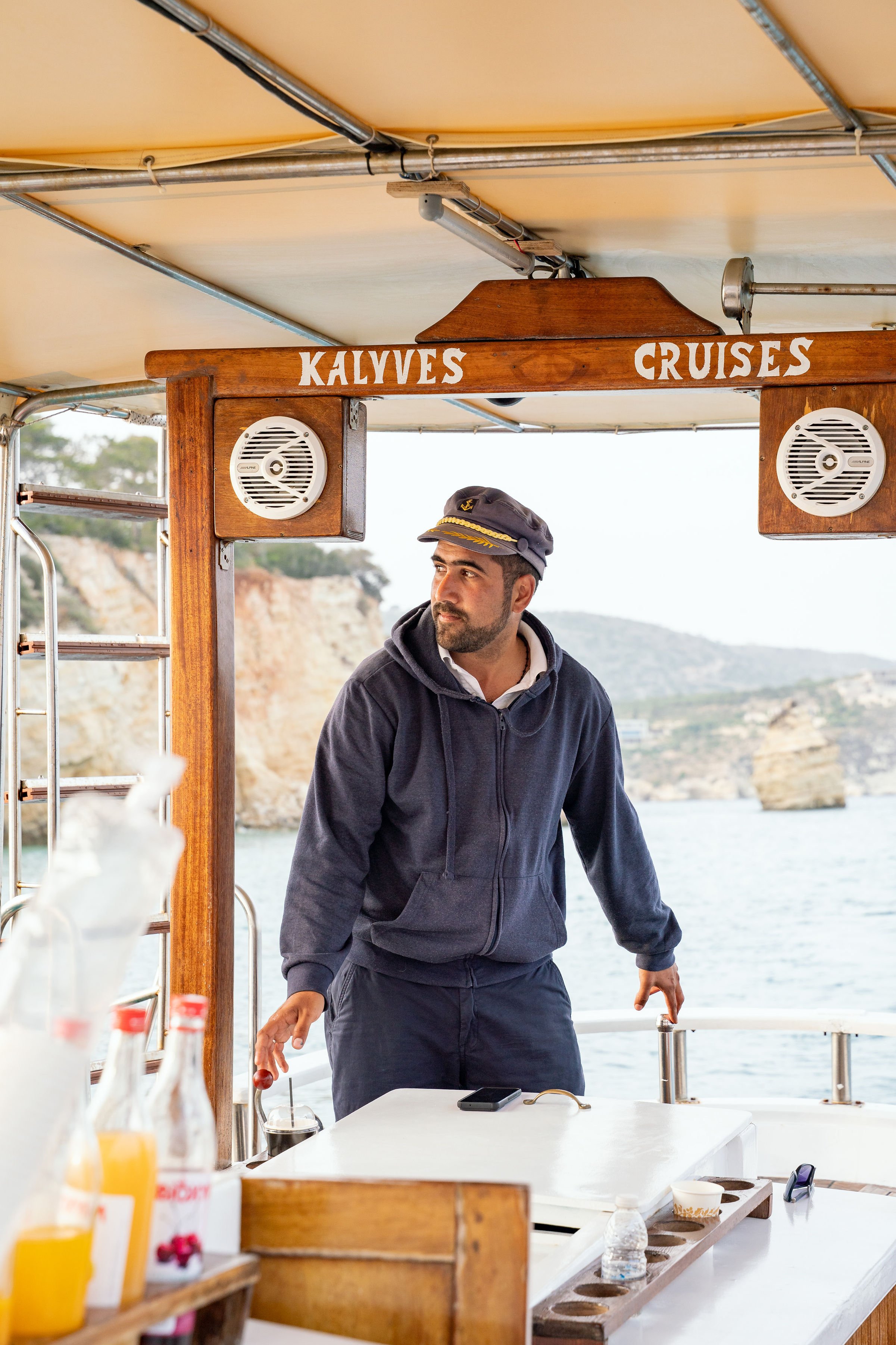 On the boat, he is not just the captain — he becomes a friend. He creates authentic relationships, full of smiles, conversations, and shared memories. With respect for the sea, love for Crete, and genuine passion, he invites you to experience a journey with him that you will remember forever.